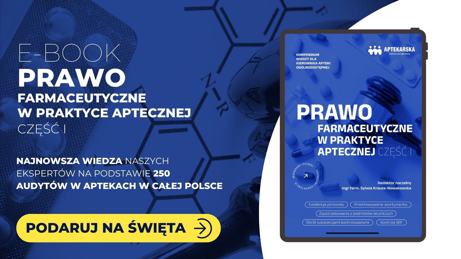 Nie czekaj, zamów e-book Prawo farmaceutyczne w praktyce aptecznej – część 1 już dziś albo podaruj go na świąteczny prezent bliskiej osobie.